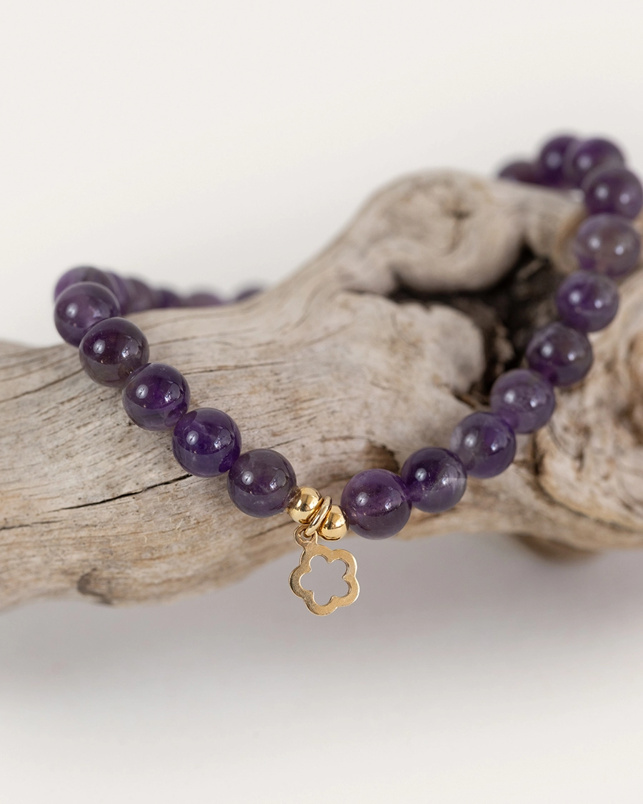 Esta pulsera emite una vibración serena y protectora, gracias a la fuerza sutil de la amatista. Su tono violeta evoca la sabiduría que habita en el silencio y la conexión con lo divino. El Círculo de Amatista simboliza el retorno al centro: un espacio interno donde todo se ordena y el pensamiento se aquieta.
